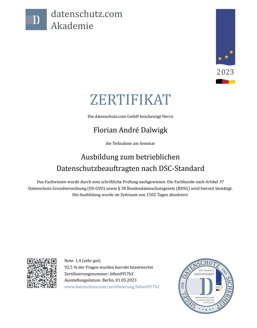 Mein Name ist Florian Dalwigk und ich bin studierter Informatiker.